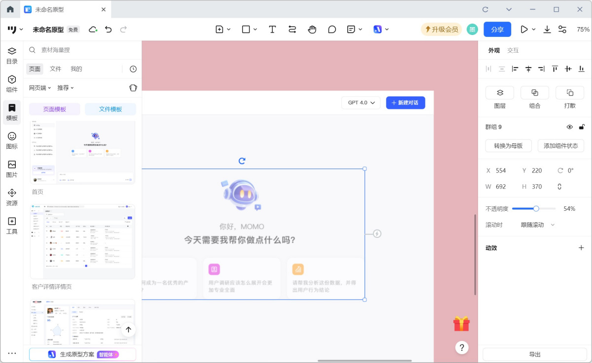 4.海量资源社区:内置丰富的设计模板与UI组件库,一键即可调用,快速启动项目,大幅提升设计效率。