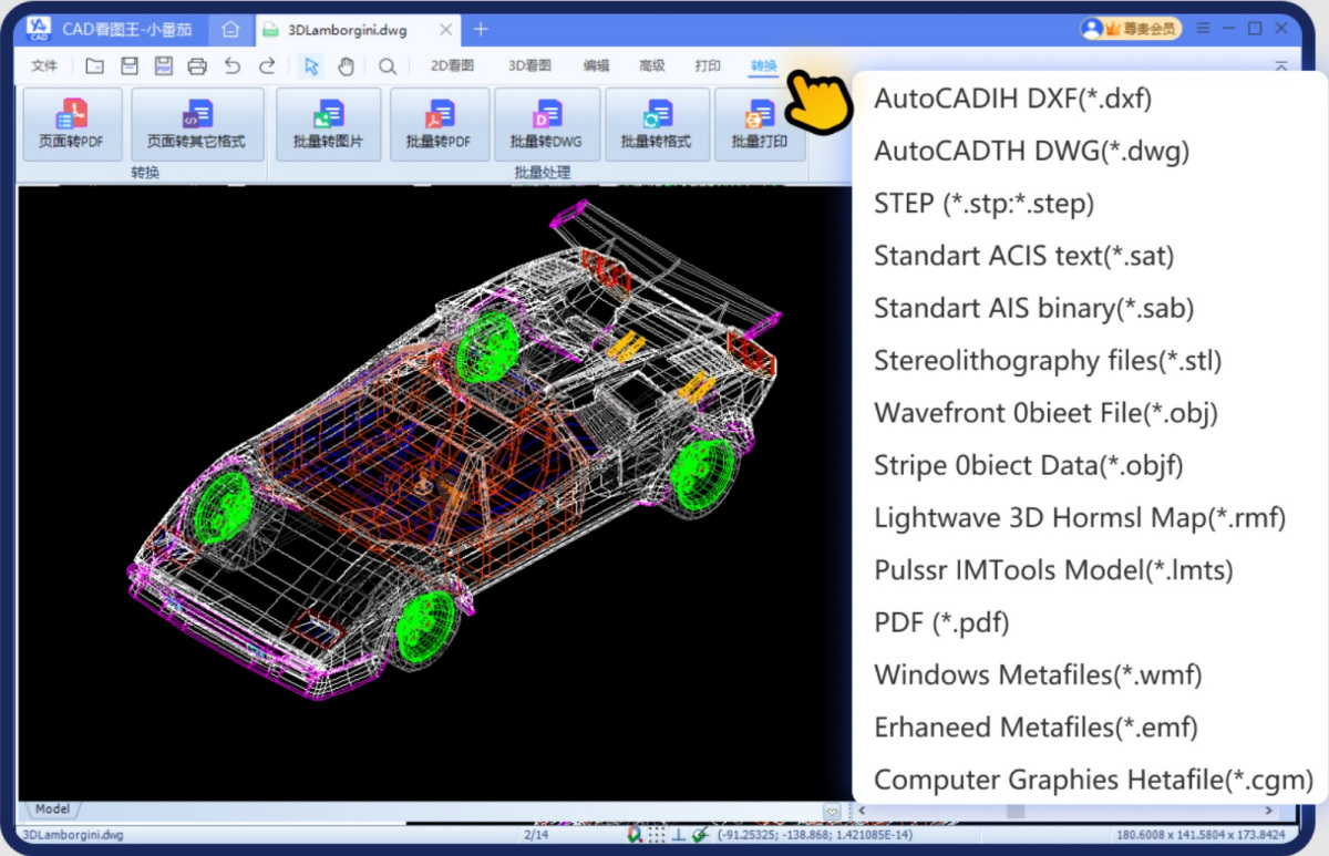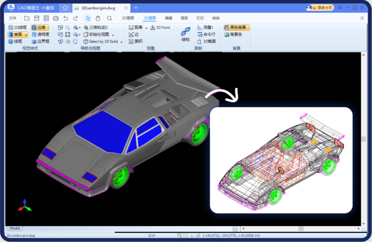 2D、3D、多结构、可测量、可旋转多视图查看CAD文件