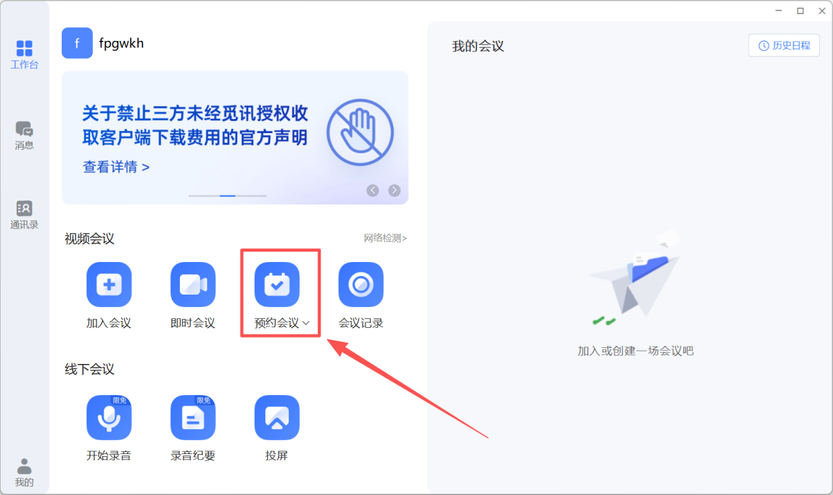 一键创建并立即开始一场临时会议,适合紧急沟通。