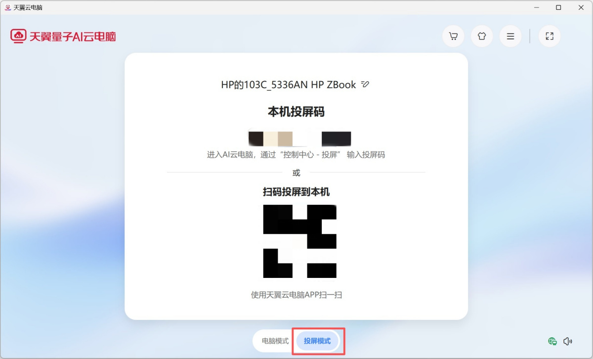 3、开启投屏模式后,在登录页面底部,切换至“投屏模式”,即可查看投屏接收端的投屏码和投屏二维码。
