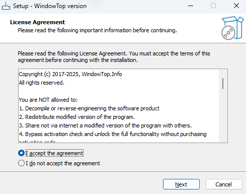 WindowTop是一款窗口自定义设置工具,可将任意窗口置顶、修改透明度。WindowTop能实现 Aero 界面模糊、智能暗色模式、缩小窗口等功能,节约操作时间,完全自定义电脑窗口!