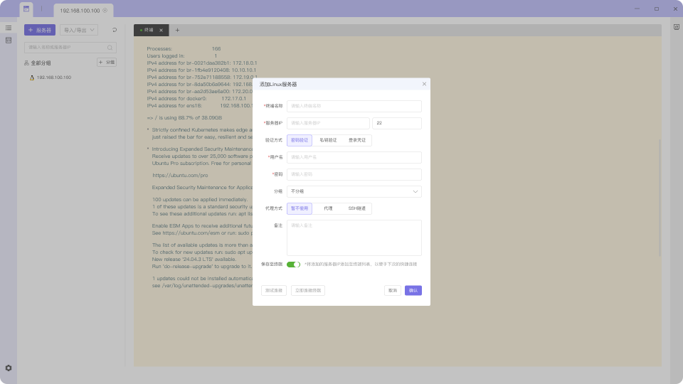 小皮终端是一款跨平台终端工具,支持MacOS、Windows、Linux等系统,内置SSH、SFTP、FTP、Docker、Mysql、数据库等终端功能。