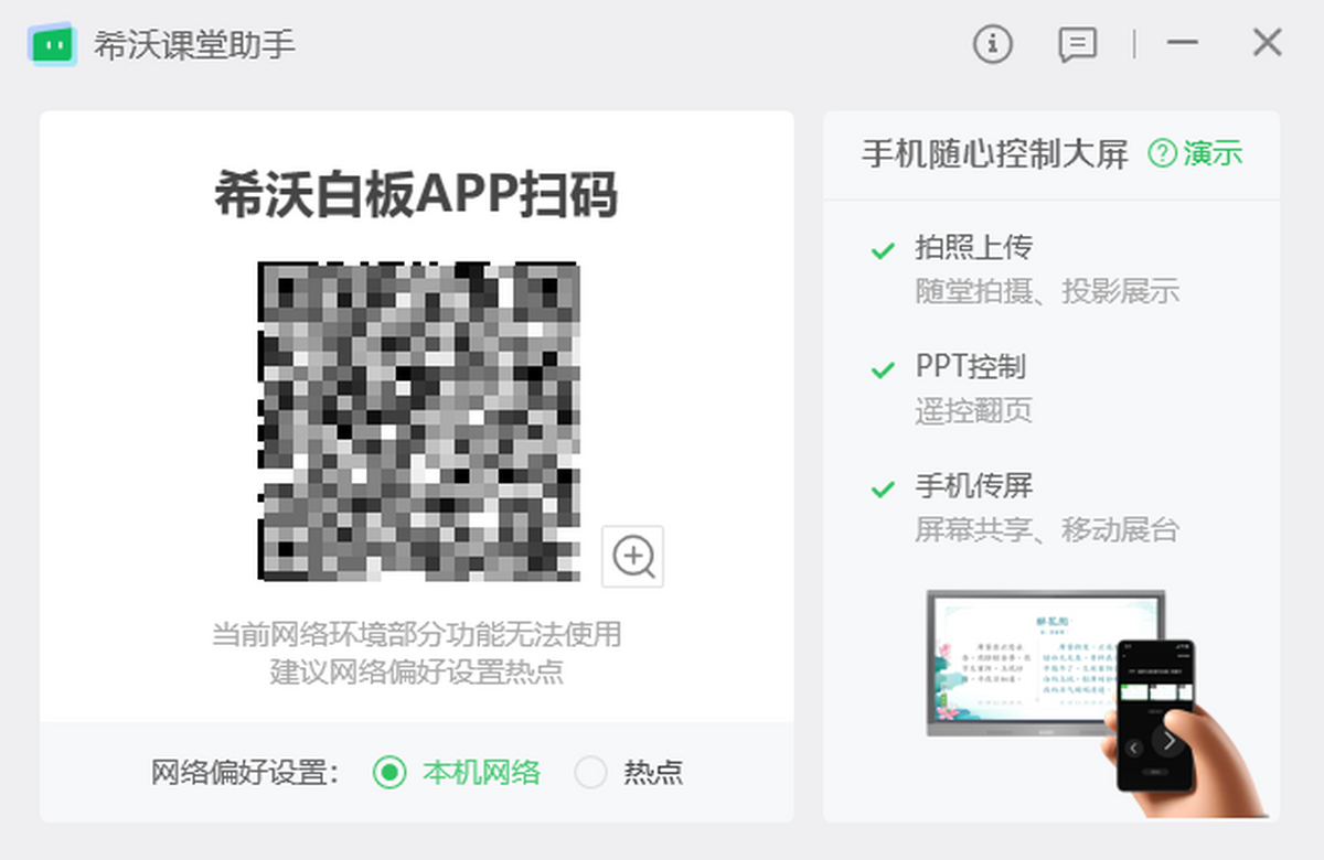 希沃课堂助手是一款智能课堂辅助教学软件,基于无线网研发,主要用于配合手机版的使用,可将手机上的PPT、文件等文件投屏到电脑上进行观看。如果教学课件需要修改,在电脑端修改可以同步到手机上,只要处于同一网络中,就可以将自己的资料上传到希沃课堂助手中,不需要使用数据线连接设备了。