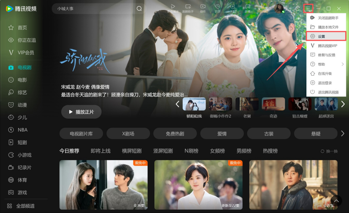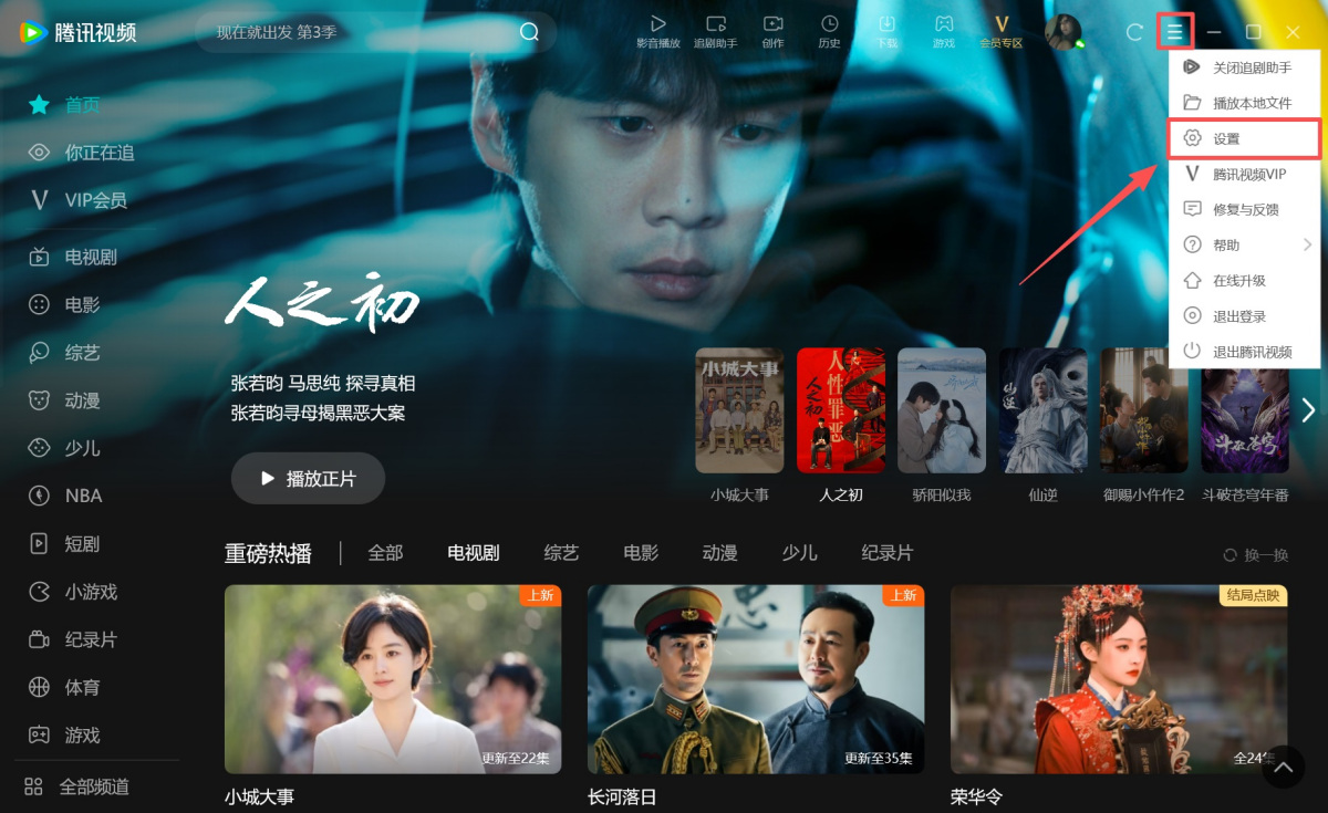 1.打开腾讯视频客户端,点击右上角的【≡】图标,在菜单列表中选择【设置】