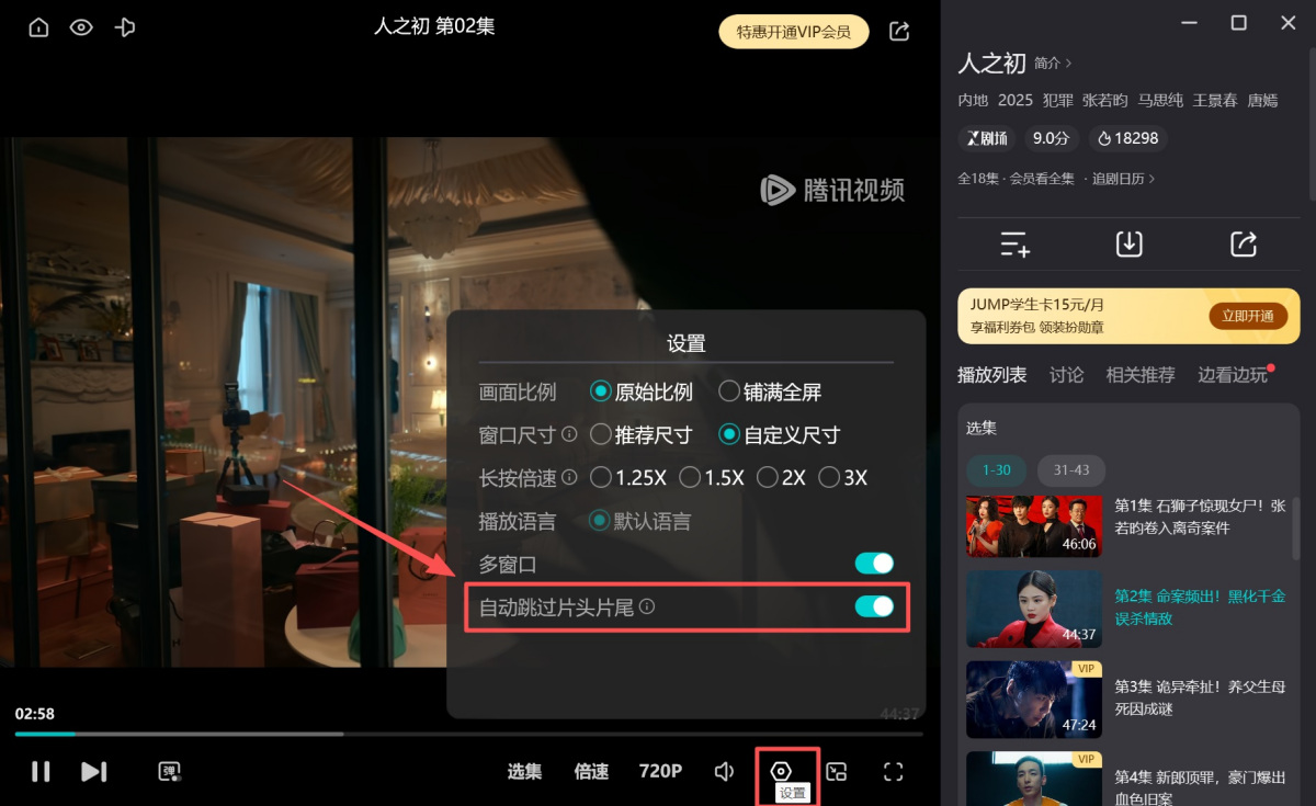 温馨提示:剧集首集不支持跳过片头片尾