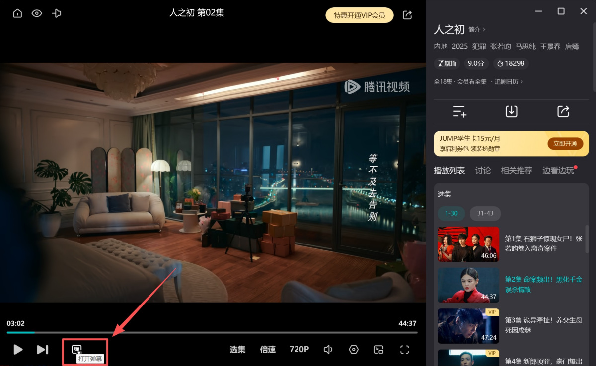 2.若您的弹幕为关闭状态,请先点击【打开弹幕】,再重复上述步骤即可