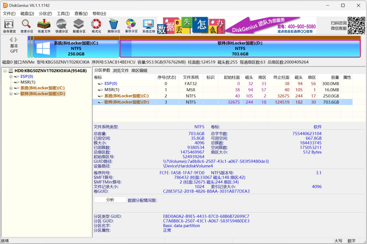 22、智能加载BitLocker加密分区时,支持分区部分被加密的情况。
