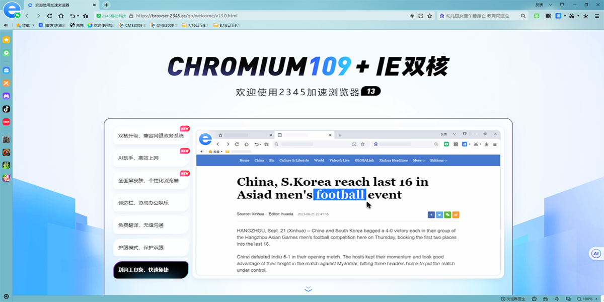 全新Chromium109内核打开网页更快,IE内核轻松兼容网银、政企平台等场景。