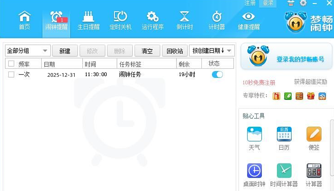 需要定时下载文件?工作前提前打开程序?需要提前打开音乐?梦畅闹钟帮您解决!