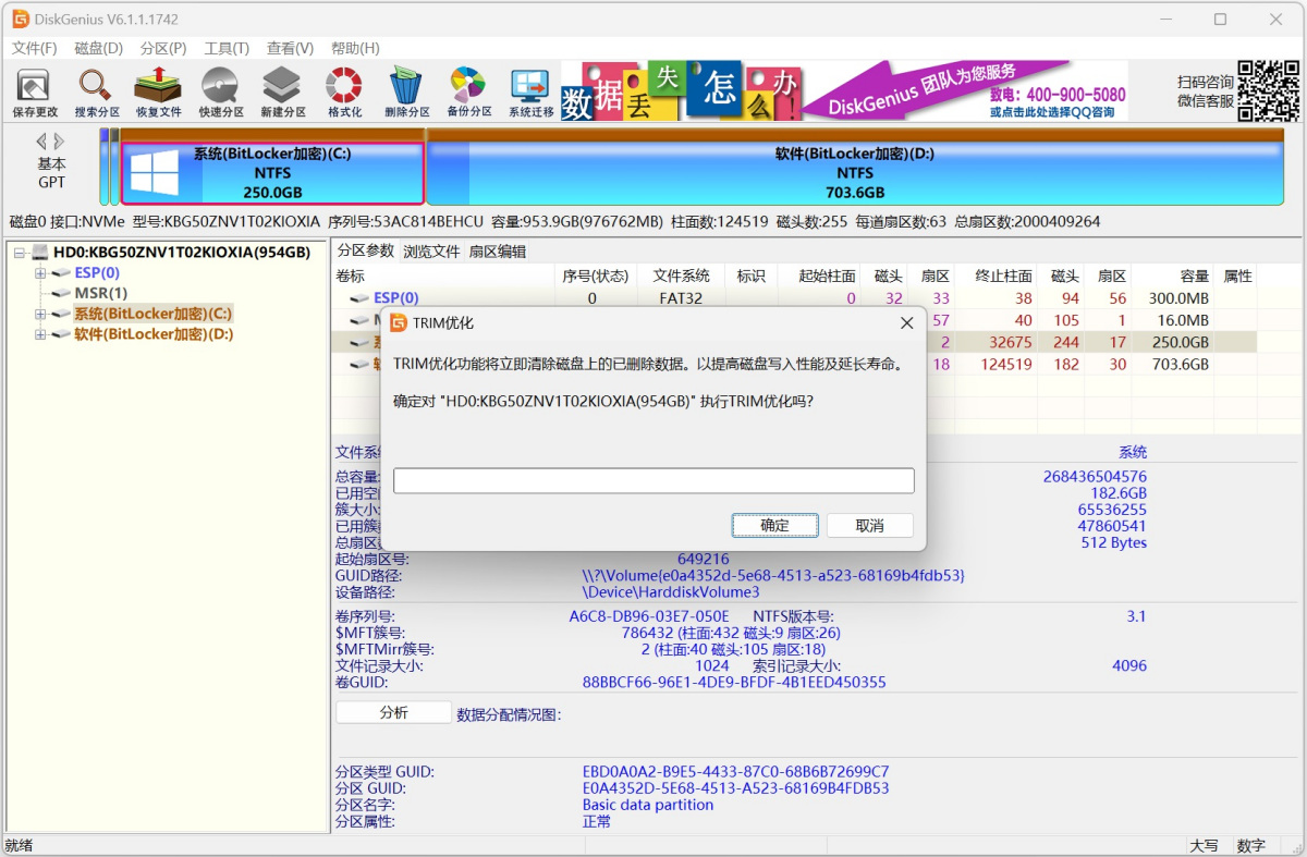 利用TRIM技术对固态硬盘、支持TRIM指令的机械硬盘或系统可以正常访问的某个分区手动执行TRIM优化,旨在提高写入性能、减少耗损及延长寿命。
