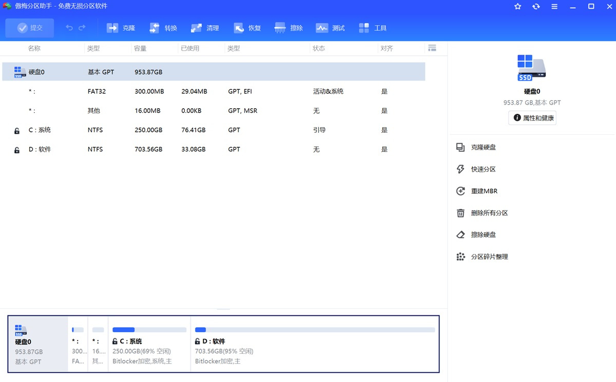 步骤5、现在你可以点击软件主界面左上角的【提交】预览要进行的操作,确认无误后,点击【执行】等待完成即可。