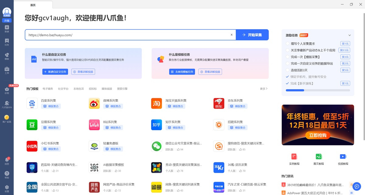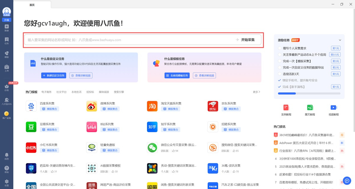 八爪鱼采集器是一种用于抓取网页数据的网络爬虫工具,可简单快速地将网页数据转化为结构化数据,存储于EXCEL或数据库等多种形式,并且提供基于云计算的大数据云采集解决方案,实现精准、高效、大规模的数据采集。八爪鱼采集器通常用于数据挖掘、竞争情报、市场研究、数据分析和各种其他用途,采用可视化操作界面,无需编写代码,用户可以通过简单的拖拽、点选和配置来定义爬取规则。