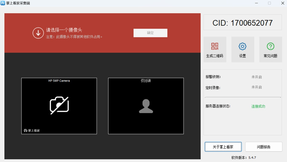 CID号无需注册,下载掌上看家采集端软件后会自动生成唯一的CID号,打开软件即可看到。