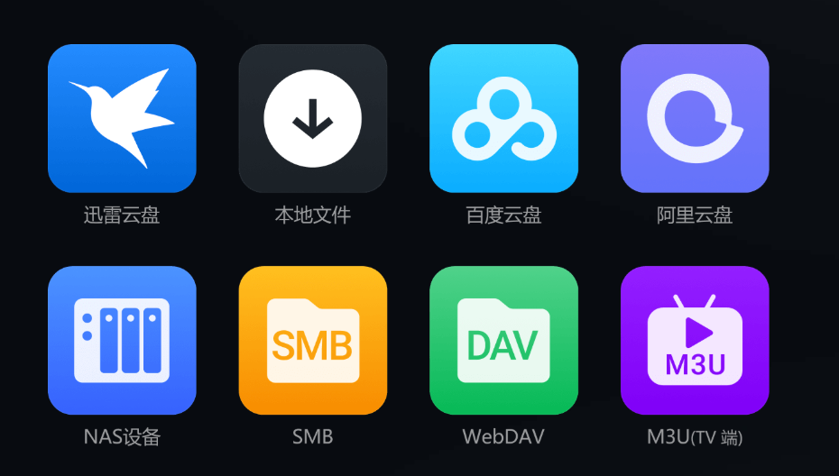 3、支持挂载迅雷/百度/阿里云盘/Samba/Webdav等资源,无需下载即点即播,整合资源超便利;