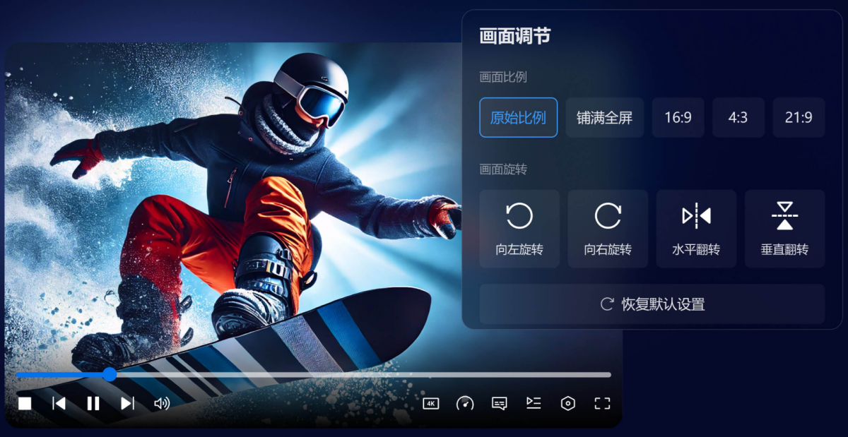 支持基础功能个性化调节:画面调节、音轨切换、字幕设置、播放方式...你想怎么看就怎么调,满足你的个性化需求。