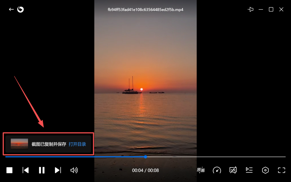 步骤3、点击播放器左下角蓝字【打开目录】,可查看保存的图片。