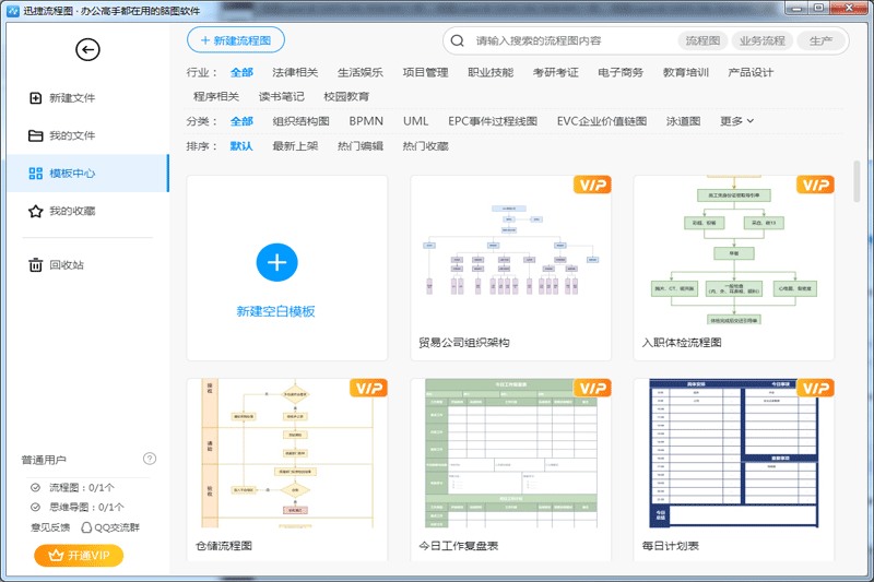 支持自定义绘制的同时迅捷画图还提供了1600+个流程图模板涵盖了各个领域,点击即可一键套用,让绘制难度大大降低。