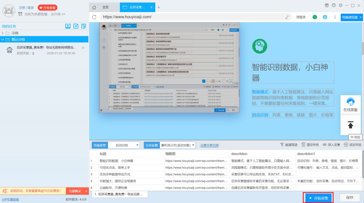 小白神器,无需配置采集规则,一键采集