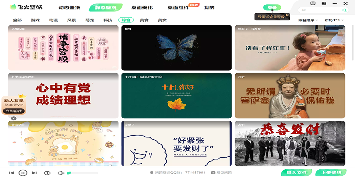 飞火动态壁纸是一款拥有15万+动静态壁纸的电脑桌面美化软件。拥有4k超清动态壁纸,游戏,动漫,趣味粒子互动风格高清壁纸任你选,还有酷炫鼠标皮肤,透明任务栏美化等一键桌面美化功能,让你的桌面动起来吧! 飞火动态壁纸汇集海量壁纸资源,众多超清无水印动态壁纸让您自由选择,优质静态壁纸免费下载。智能提醒让你晴雨先知,备忘事项提升办公效率,各色桌面美化功能及优质壁纸一键美化你的桌面,让你的桌面动起来! 更有各种隐藏彩蛋等着你哦!