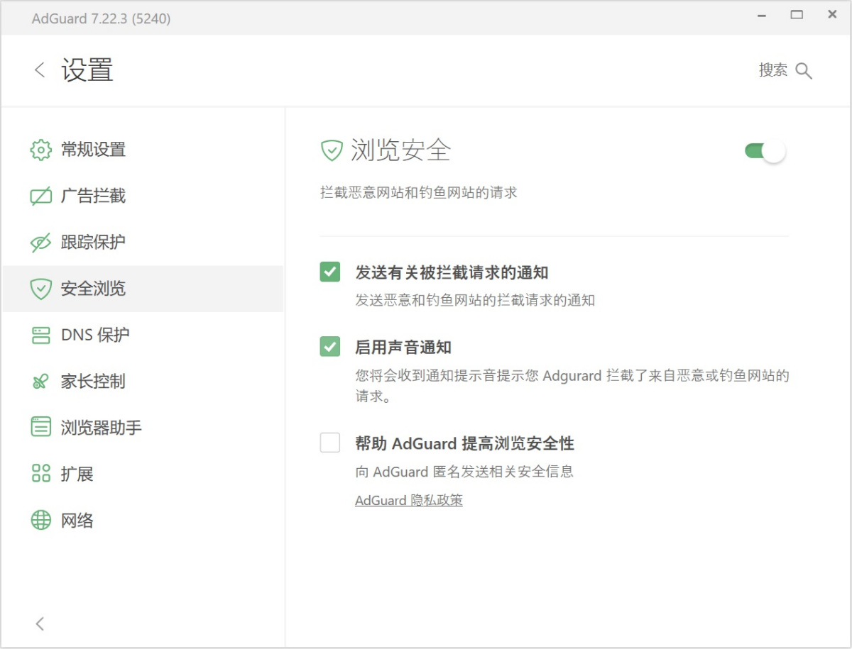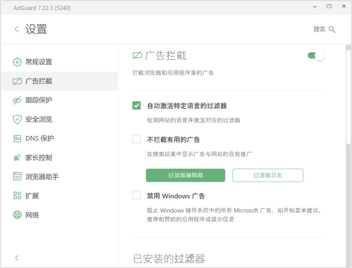 AdGuard 拦截浏览器和应用程序里的横幅广告、弹窗以及视频广告。