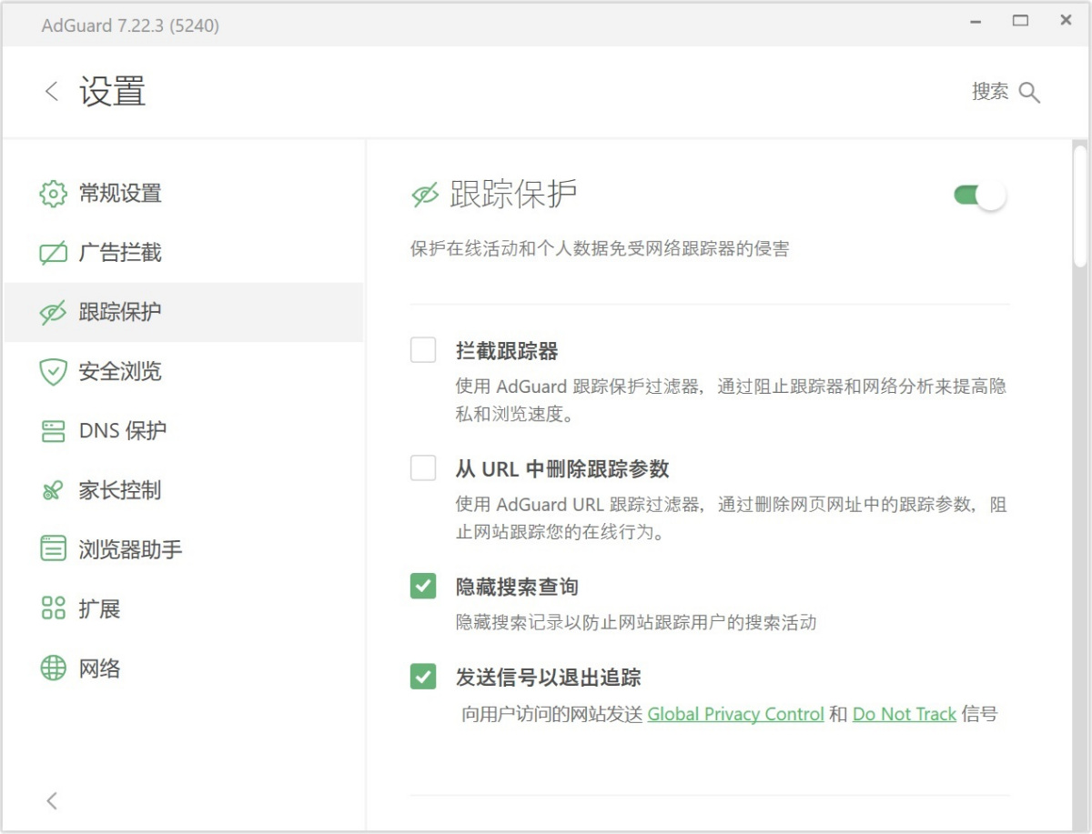 AdGuard 保护个人数据免受网络分析和在线跟踪器的侵扰。
