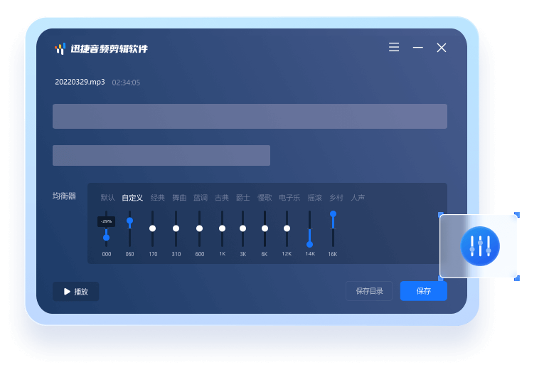 提供经典、蓝调、乡村等多种音效设置,自定义调整参数大小,可以对音频的速度、音量进行设置,满足制作个性化音效的需求。