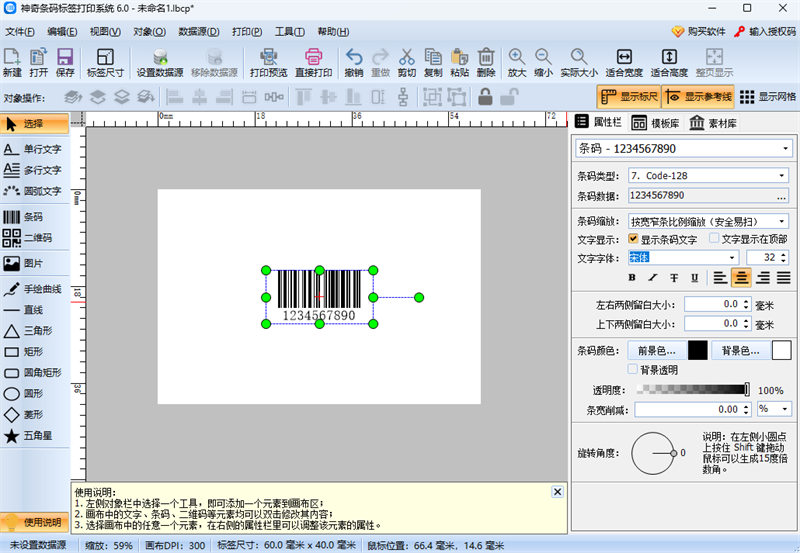 单行文本、多行文本、条形码生成、二维码生成、图片导入、常用标签标识,应有尽有