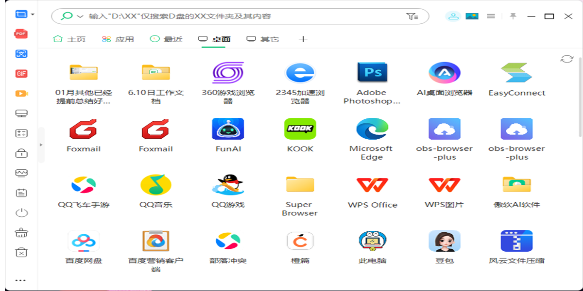 支持快速搜索本机文件、应用,提升打开常用文件和程序的效率;是电脑文件归纳助手,你的桌面分类贴心管家。