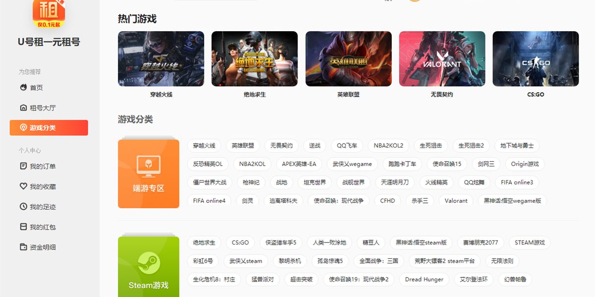 U号租是一个专业的游戏租号平台,为玩家提供覆盖了端游、手游等高级账号。有了U号租,您可以轻松实现:王者荣耀租号、和平精英租号、CF租号、英雄联盟LOL租号和绝地求生租号等,高端帐号即时体验!现在下单,单单都返奖励金。邀请新人更有额外奖励。