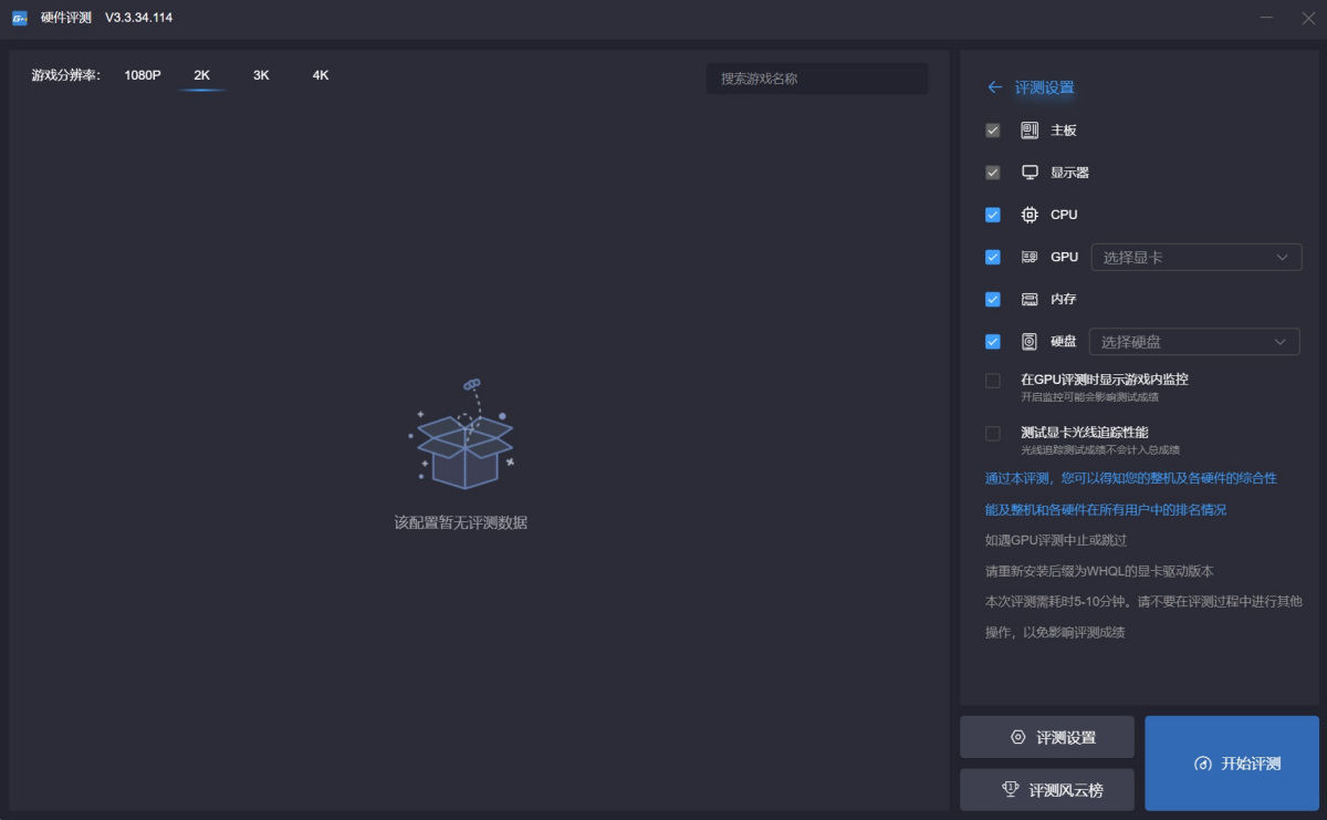 1. 确保性能评测时的测试环境(如分辨率)与实际游戏分辨率一致;
