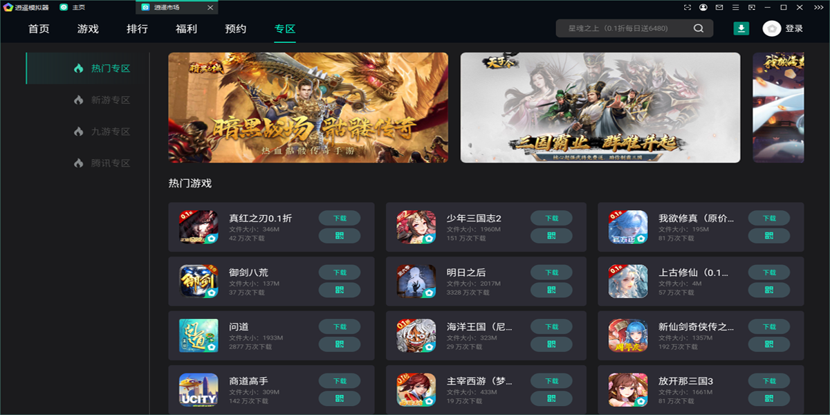 海量首发游戏:逍遥模拟器内市场收录海量手游和应用,及时更新官方首发游戏,抢先体验各种大作,电脑上玩手游,账号数据可以和手机互通。