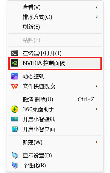 1. 桌面右键,打开NVIDIA控制面板。