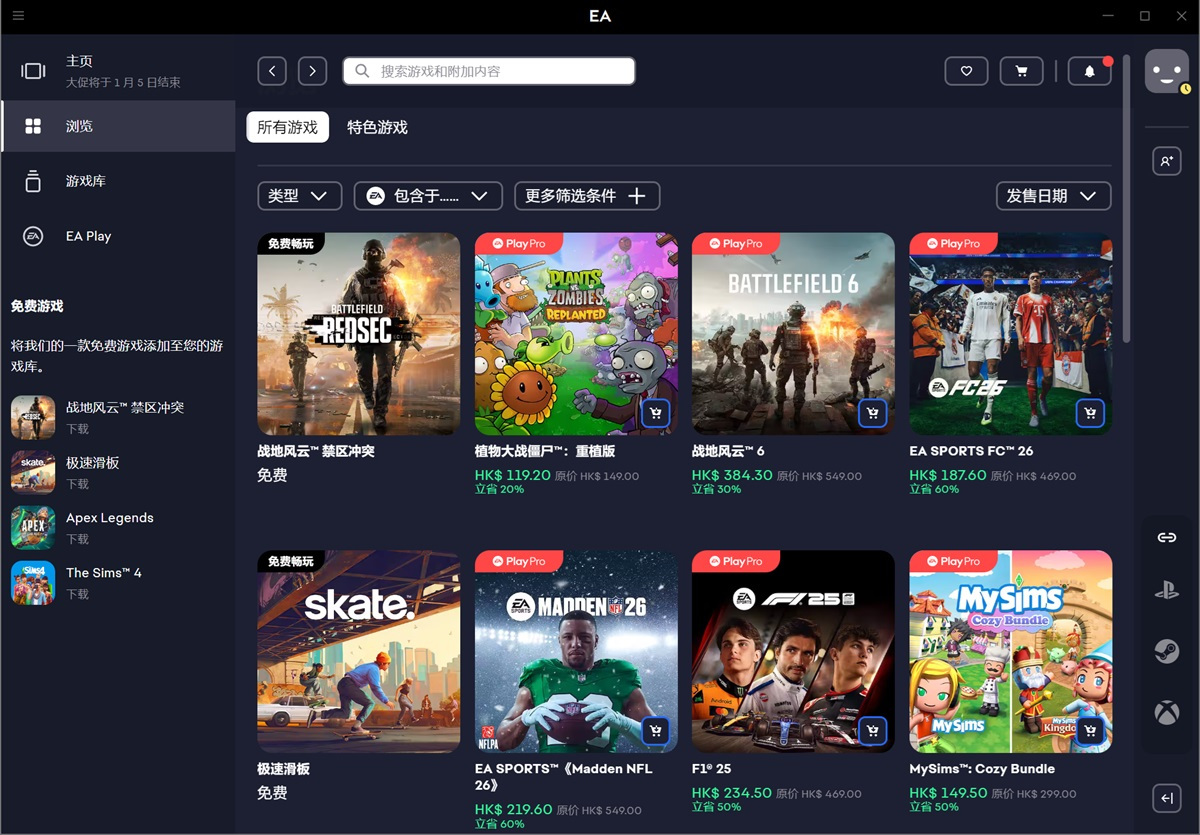 查看您的好友正在游玩什么游戏,并找到 EA 的最新版本,然后再点击几下即可将它们加入到您的游戏库中。